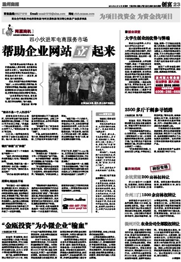 溫州商報:四小伙進軍電商服務市場 幫助企業網站立起來